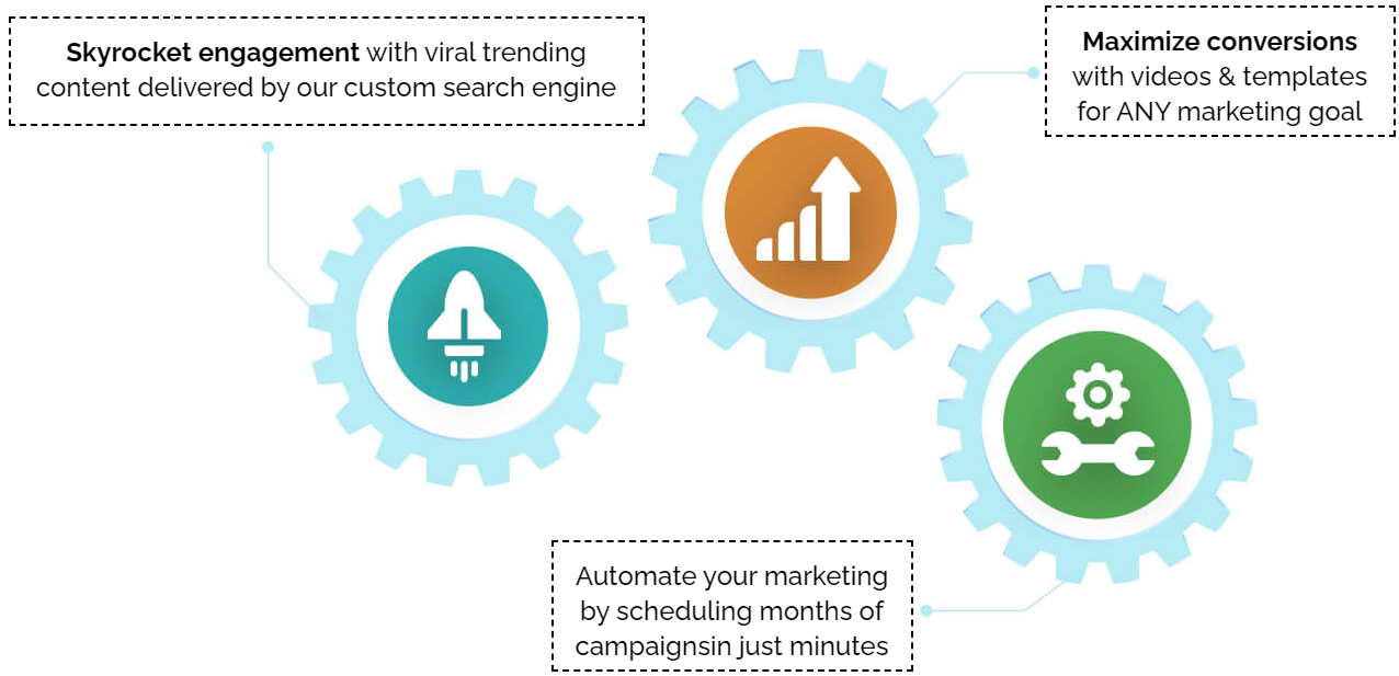 Within minutes you can create mind-blowing videos for any social platform by using ready-made, fully customizable video templates inside the 365 day social content calender!